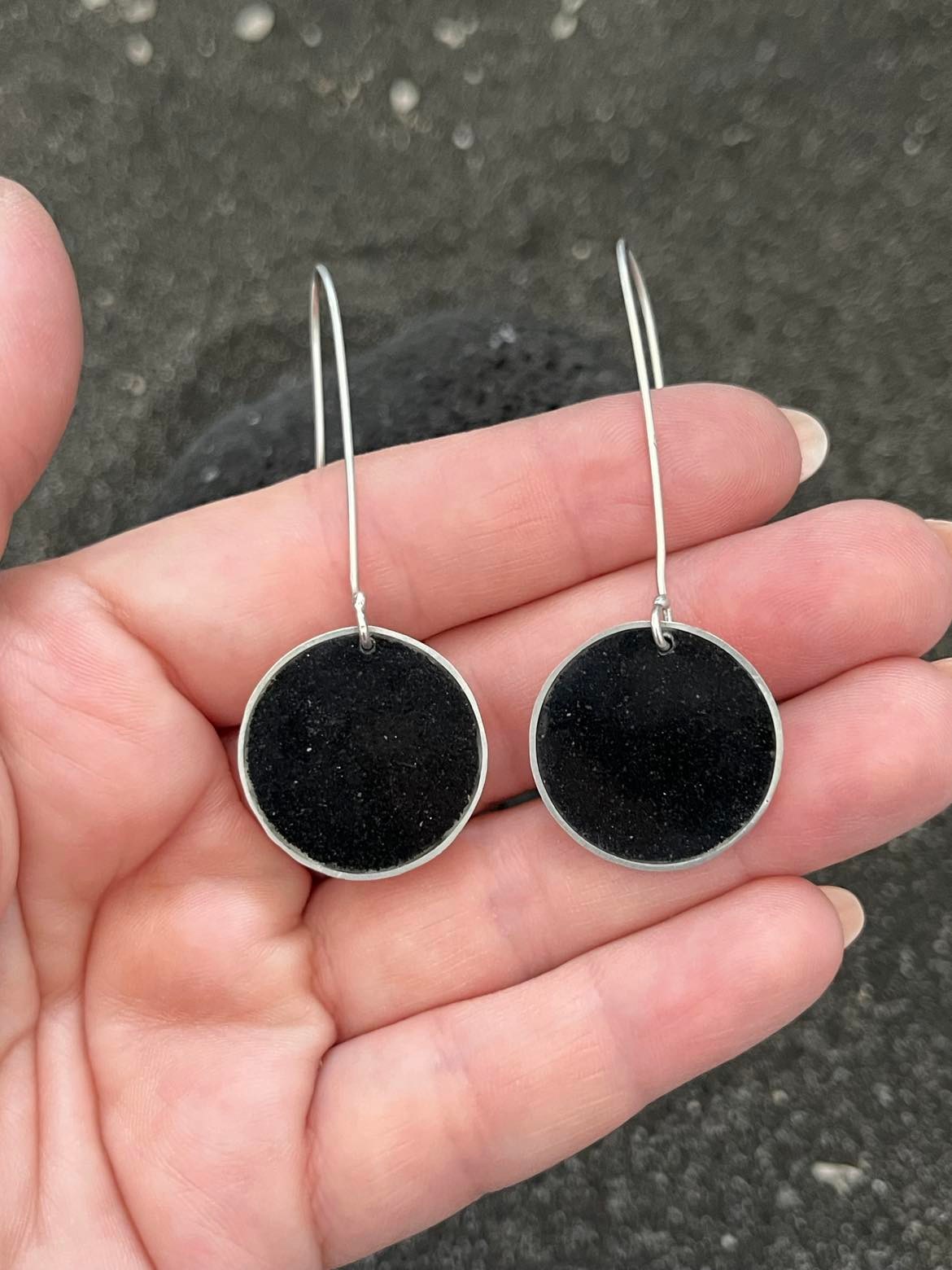 The materials I used to create this unique Earrings are silver (925), volcanic sand from Santorini island and liquid glass.